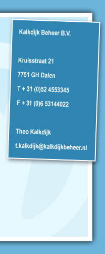 Kalkdijk Beheer BV is in 1994 opgericht en heeft alle activiteiten
